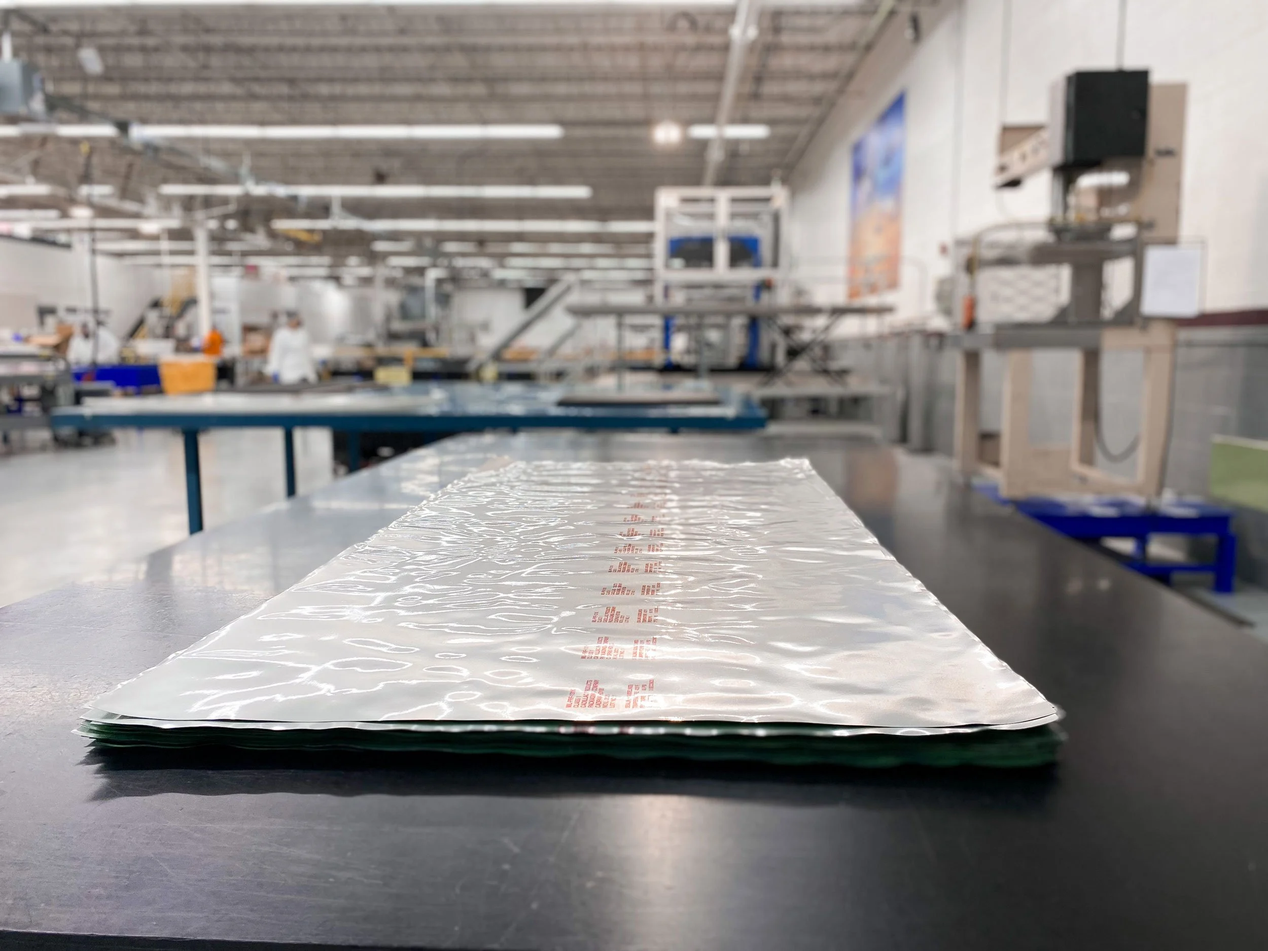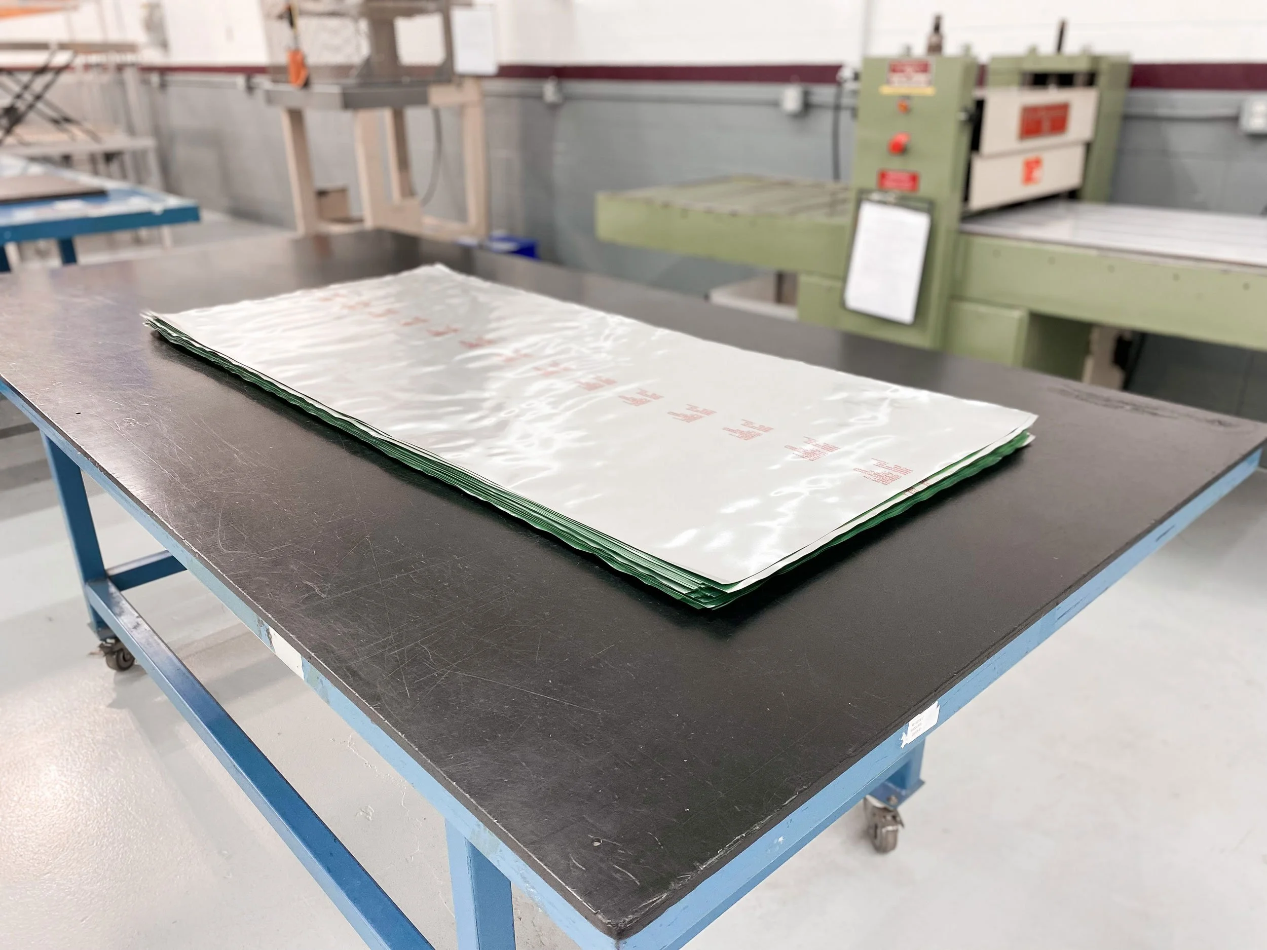 Rectangular sheets are typically cut to size from rolls of paper, poly, Mil-Spec laminations, and commercial flexible packaging materials.