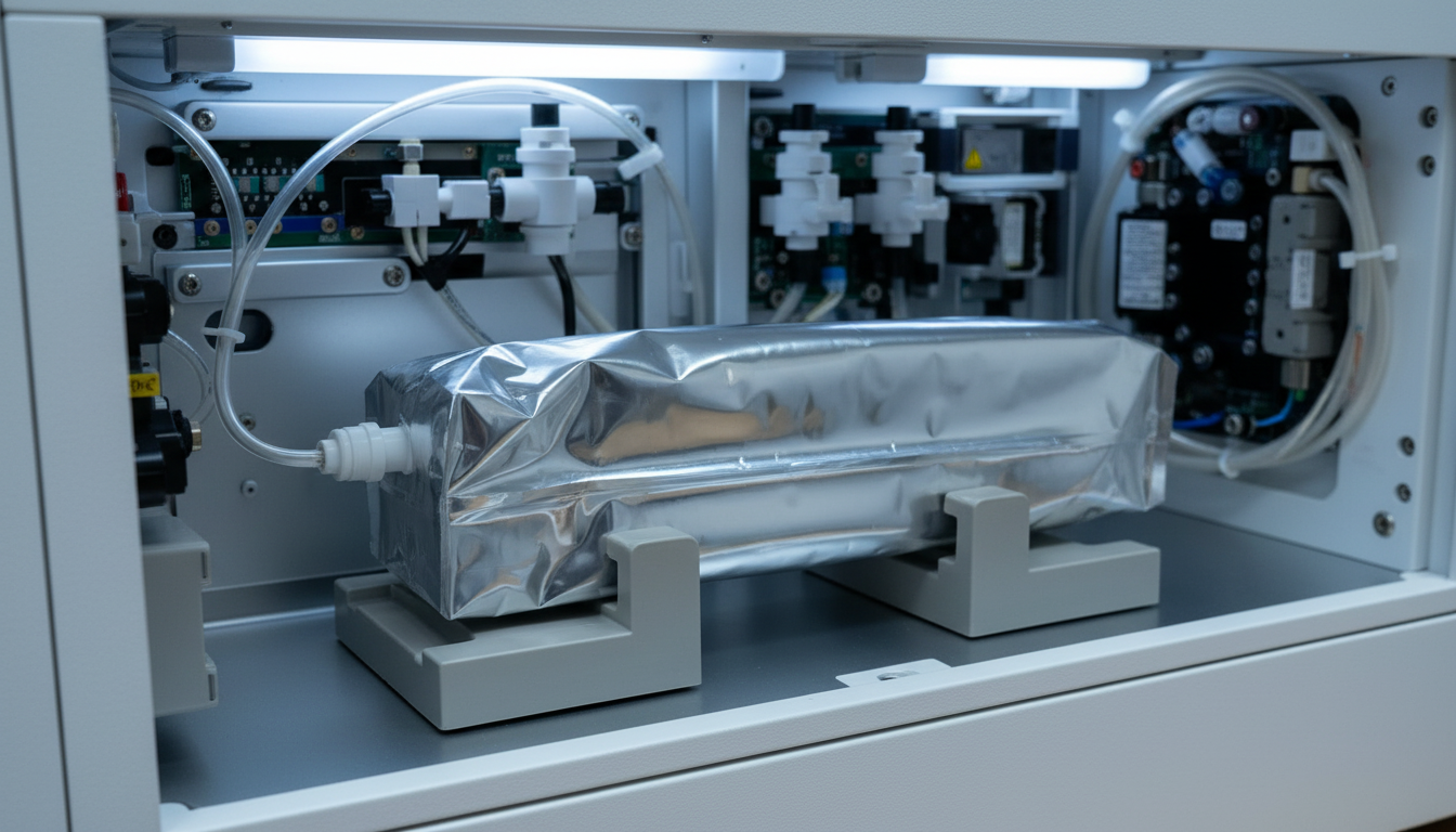 Flexible pouches serve as primary fluid reservoirs housed within automated analyzers, requiring precise geometry, repeatable performance, and exact fitment placement.